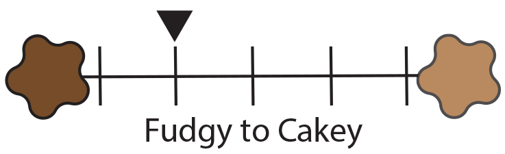 This brownie brings back memories of sitting around a campfire telling stories about one adventure after another while roasting marshmallows on a stick. The flavor profile is a mix of Dutch-processed cocoa blended with semi-sweet chocolate, tempered in part by the vegan marshmallows (no gelatin). As with the stories one tells amongst friends, there are different layers of truth to this brownie. It definitely has a smooth chocolate base, but in the end the sweetness of the marshmallows takes the edge. That is, unless you eat the bottom first ... then it's semi-sweet chocolate all the way!